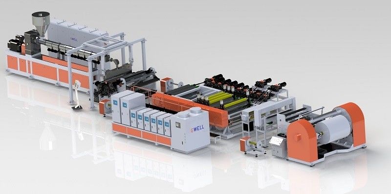 Taş Kağıt Üretim Makinesi Üç katman Taş Kağıt dökme germe filmi ekstrüzyon hattı